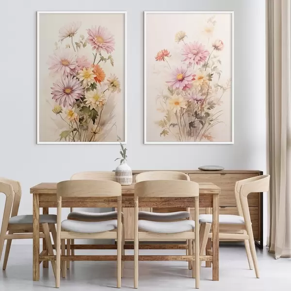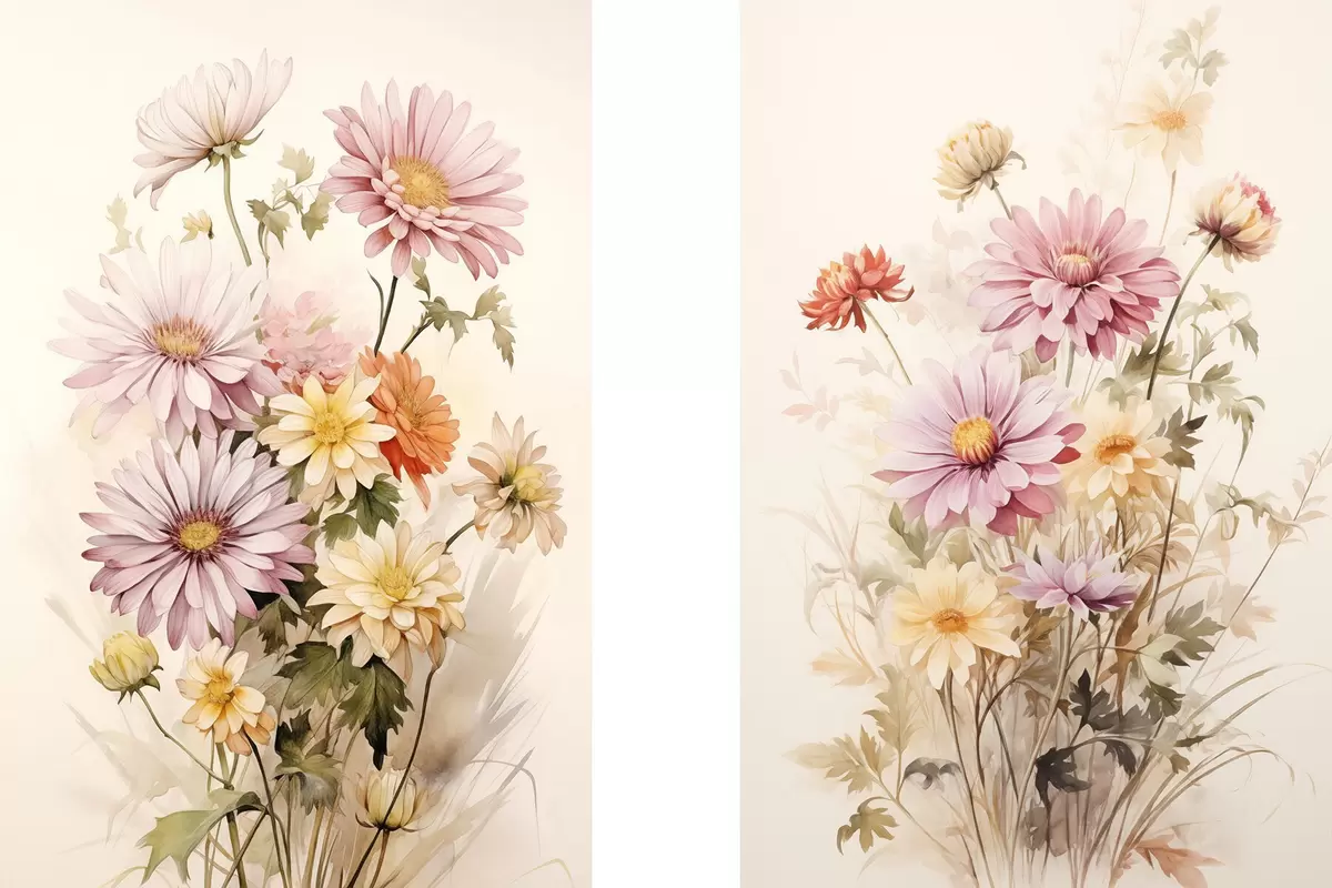 Poster Een boeket kleurrijke bloemen, zachte aquarel stijl, op een lichte achtergrond, botanische illustratie Nr d00649