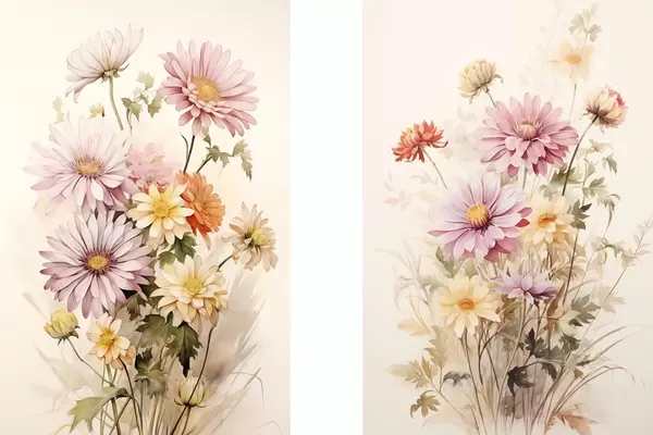 Poster Een boeket kleurrijke bloemen, zachte aquarel stijl, op een lichte achtergrond, botanische illustratie Nr d00649