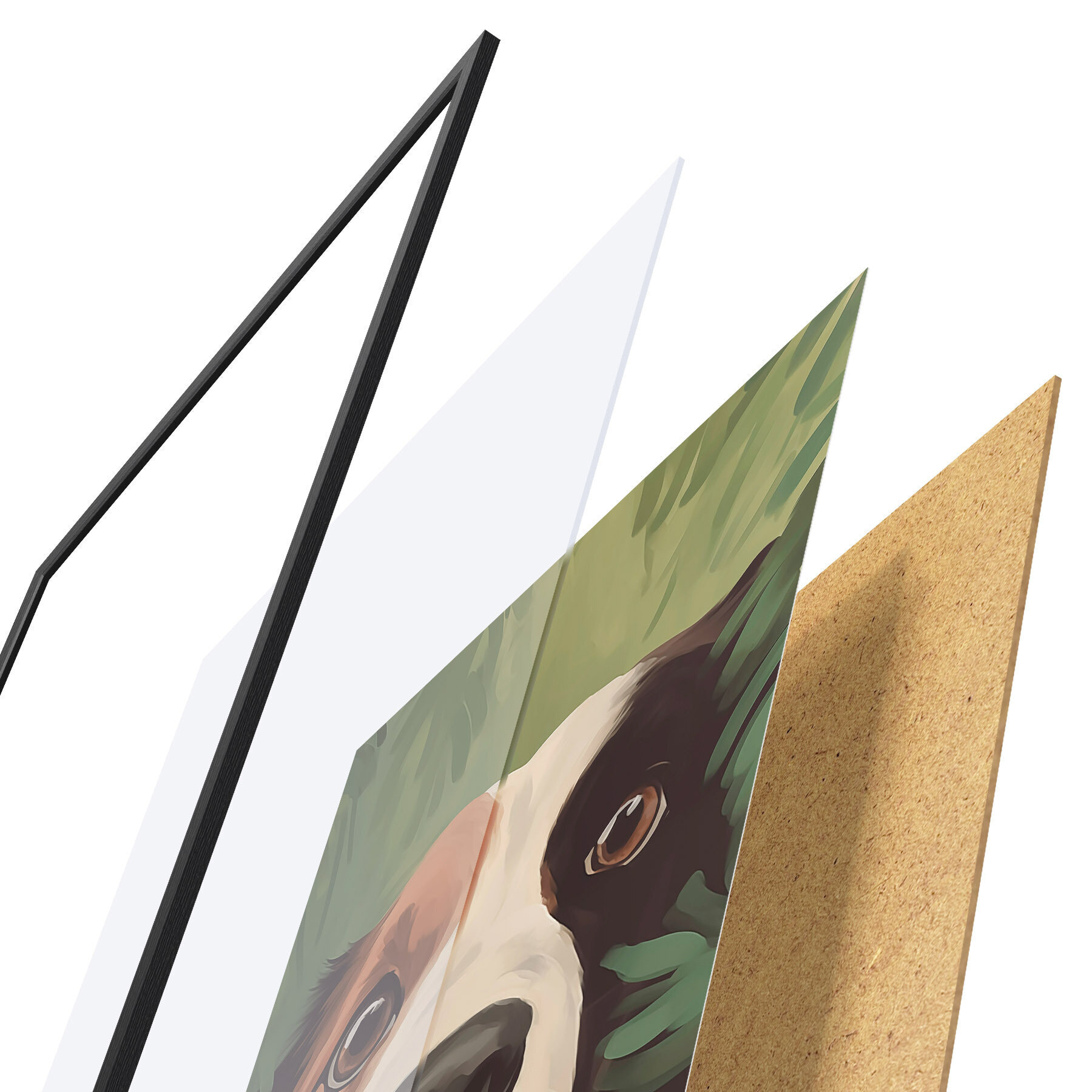 De poster bestaat uit een frame, plexiglas, geprinte afbeelding en spaanplaat achterkant. De poster kan meteen aan de muur worden gehangen dankzij de bevestigingen op de achterkant.