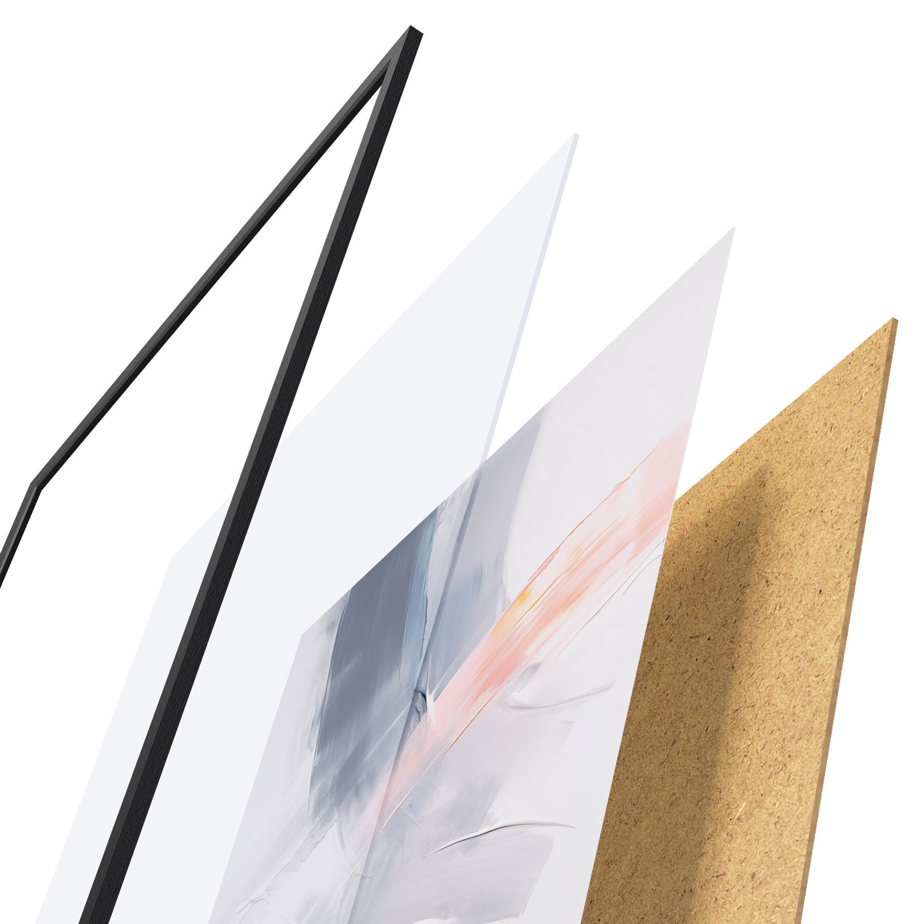 De poster bestaat uit een frame, plexiglas, geprinte afbeelding en spaanplaat achterkant. De poster kan meteen aan de muur worden gehangen dankzij de bevestigingen op de achterkant.