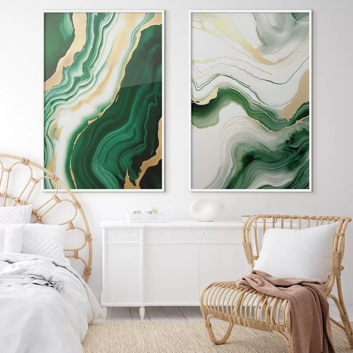 Poster Groen en wit marmer met oranje-gele aderen Nr d00688