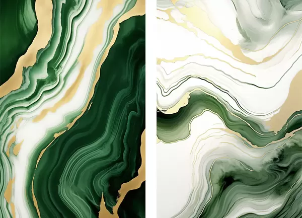 Poster Groen en wit marmer met oranje-gele aderen Nr d00688