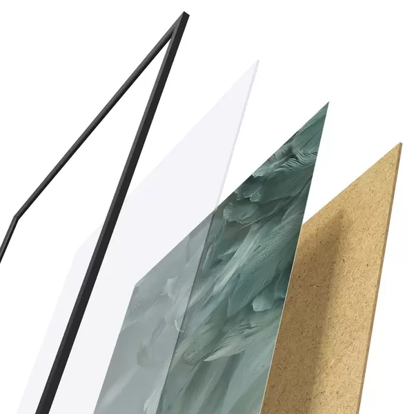 De poster bestaat uit een frame, plexiglas, geprinte afbeelding en spaanplaat achterkant. De poster kan meteen aan de muur worden gehangen dankzij de bevestigingen op de achterkant.