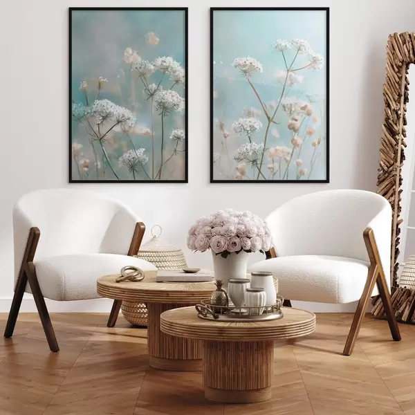 Poster Queen Anne's Lace-bloemen in aquarelstijl op een blauwe achtergrond Nr d00705