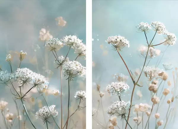 Poster Queen Anne's Lace-bloemen in aquarelstijl op een blauwe achtergrond Nr d00705