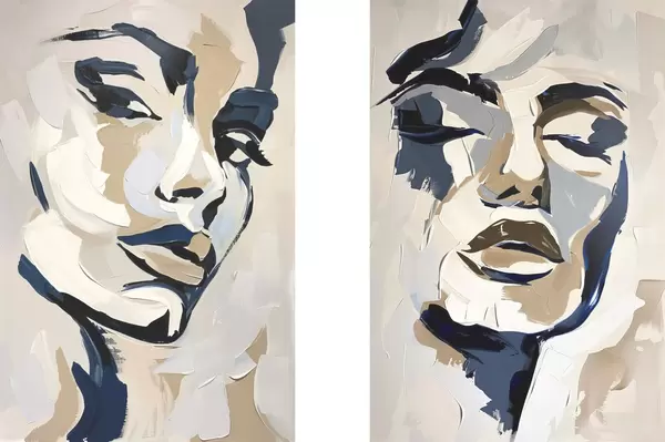 Poster Abstracte gezichten van vrouwen met imitatiepenseelstreken Nr d00713