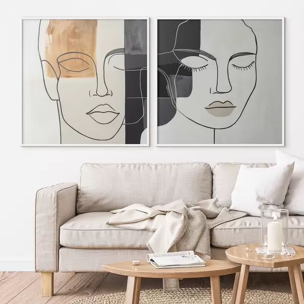 Poster Abstracte portretten van een man en een vrouw d00720
