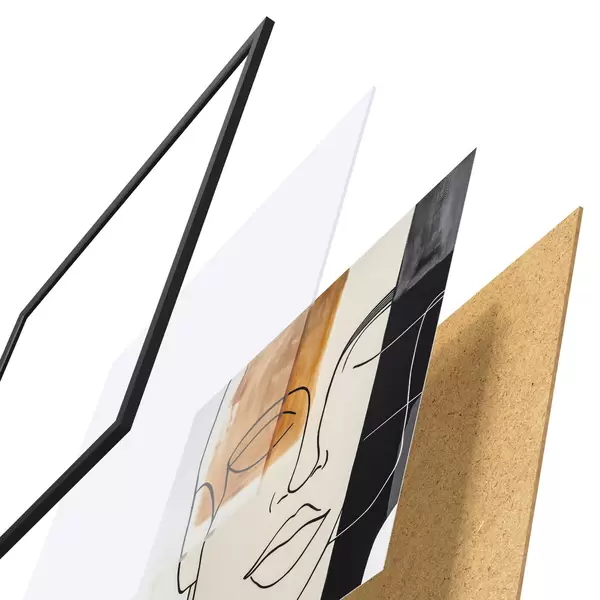 De poster bestaat uit een frame, plexiglas, geprinte afbeelding en spaanplaat achterkant. De poster kan meteen aan de muur worden gehangen dankzij de bevestigingen op de achterkant.
