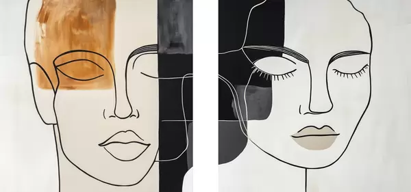 Poster Abstracte portretten van een man en een vrouw d00720