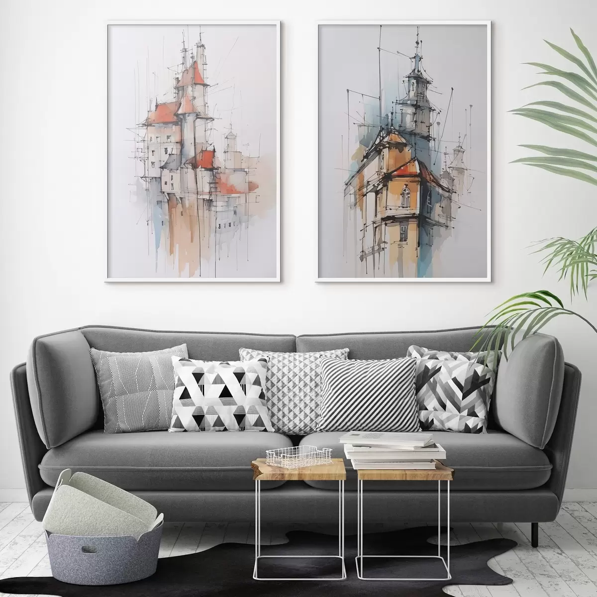 Poster Huizen imitatie schets en aquarel Nr d00725
