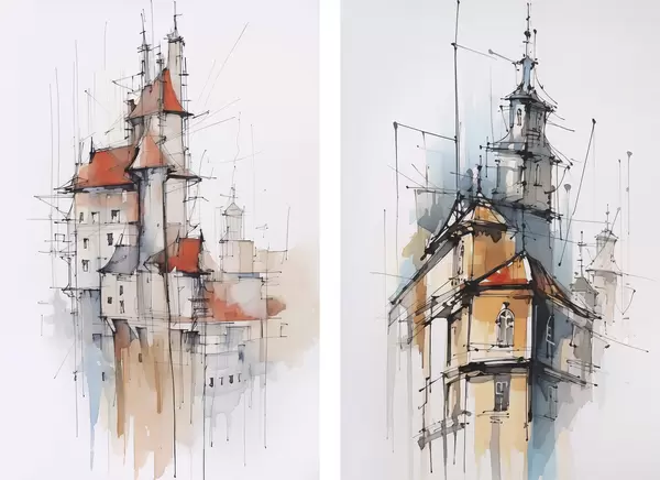 Poster Huizen imitatie schets en aquarel Nr d00725