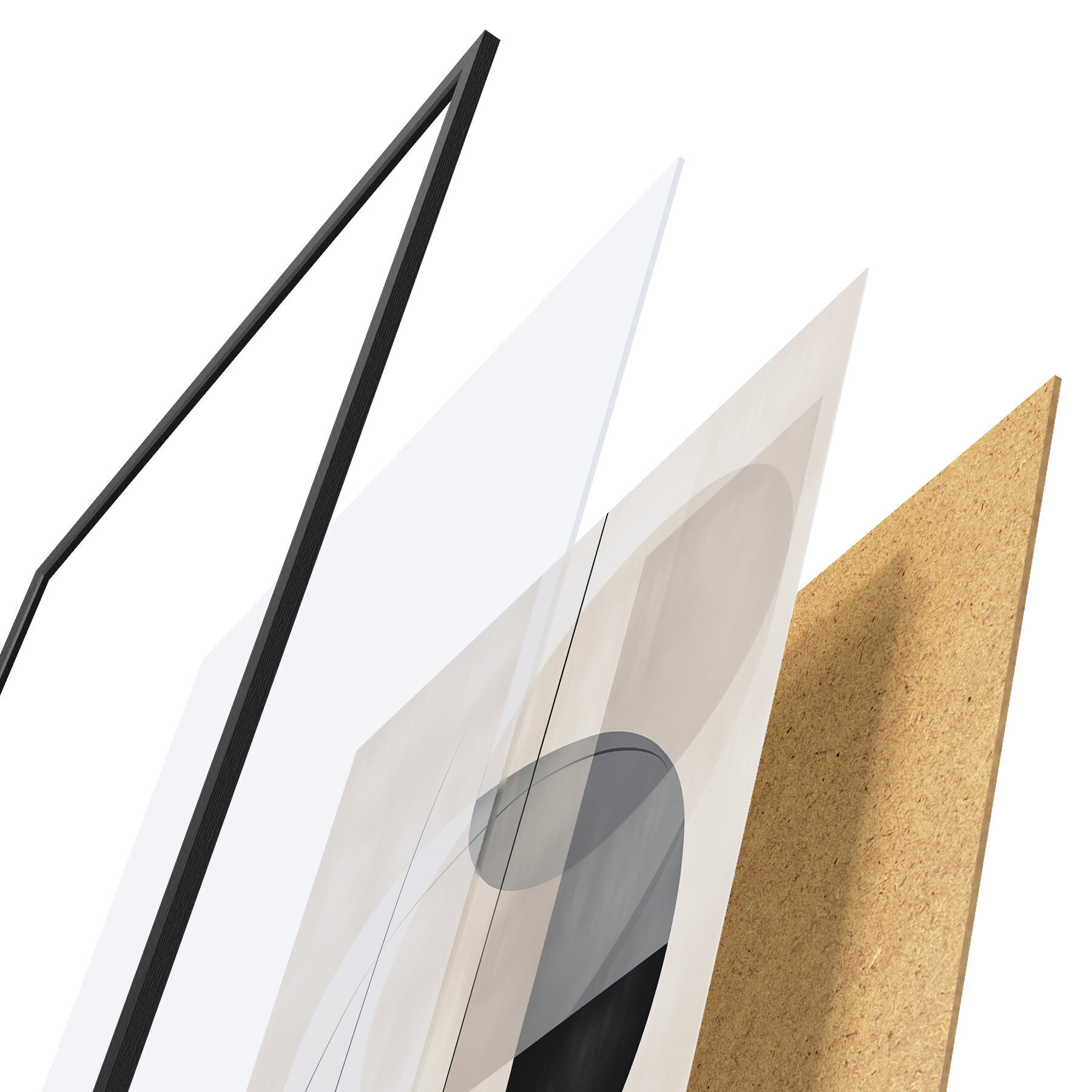 De poster bestaat uit een frame, plexiglas, geprinte afbeelding en spaanplaat achterkant. De poster kan meteen aan de muur worden gehangen dankzij de bevestigingen op de achterkant.