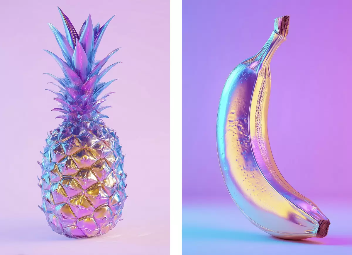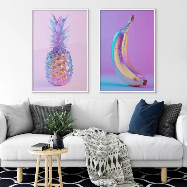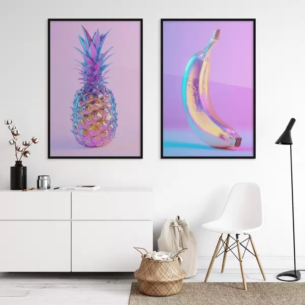 Poster heldere glanzende ananas en banaan in popartstijl Nr d00737