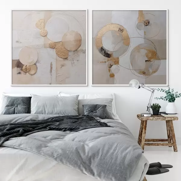 Poster Getextureerde schildering met beige en witte vormen Nr d00741