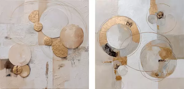 Poster Getextureerde schildering met beige en witte vormen Nr d00741