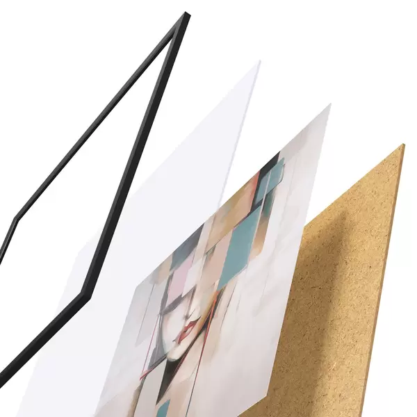 De poster bestaat uit een frame, plexiglas, geprinte afbeelding en spaanplaat achterkant. De poster kan meteen aan de muur worden gehangen dankzij de bevestigingen op de achterkant.