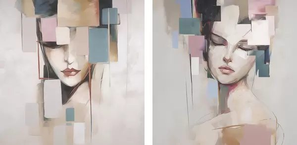 Poster Abstract portret imitatie van schilderij d00755