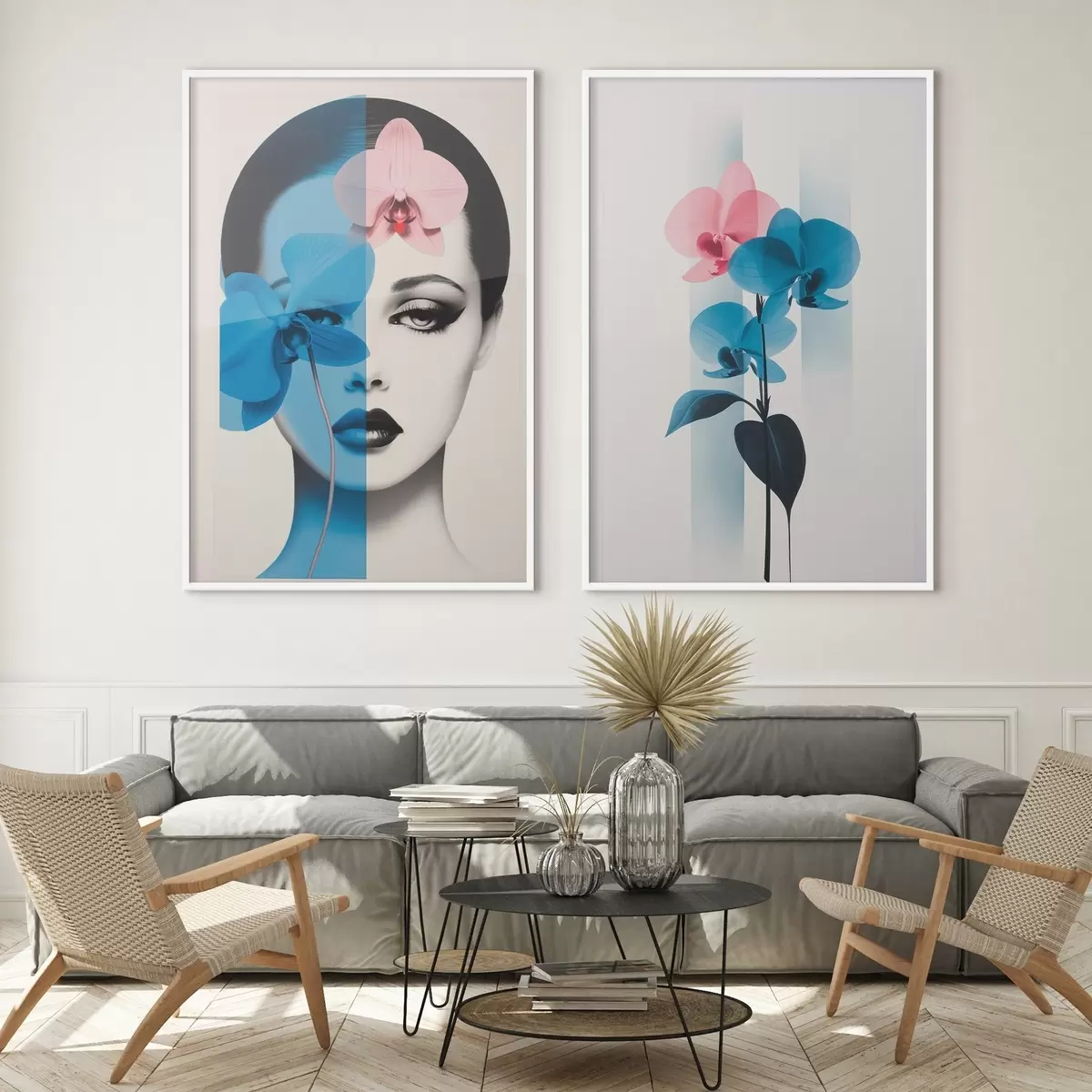Poster Abstract kunstportret van een vrouw met orchideeën d00818