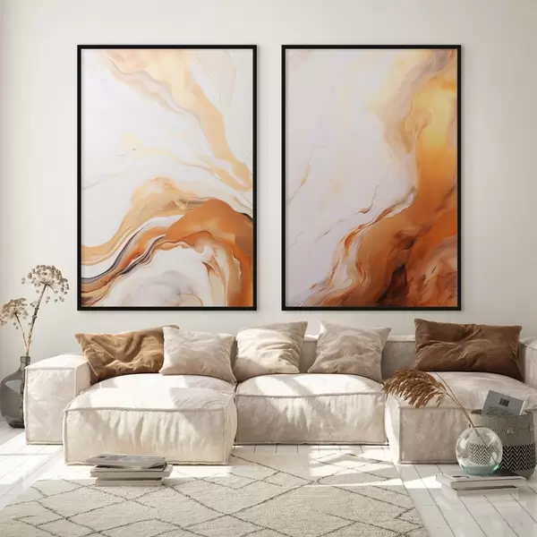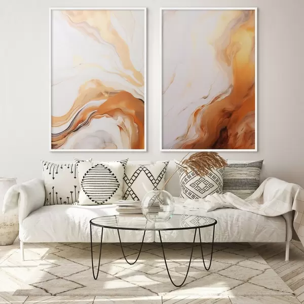 Poster Abstracte schilderkunst imitatie met witte en oranje kleuren, vloeiende kunst met golvende lijnen, moderne kunst Nr d00825