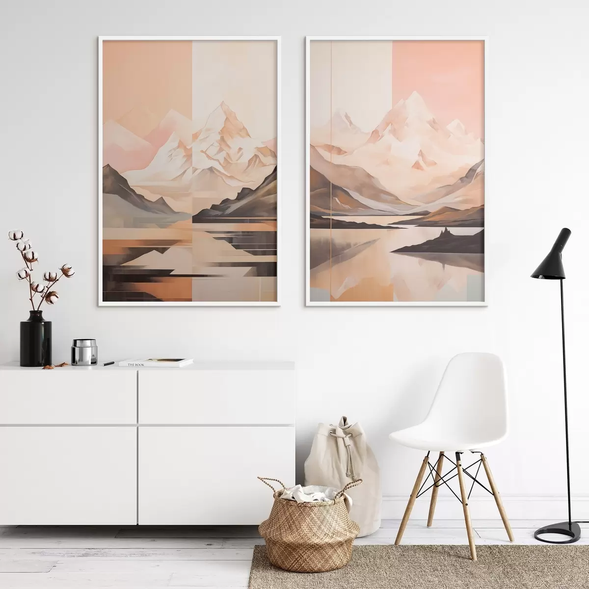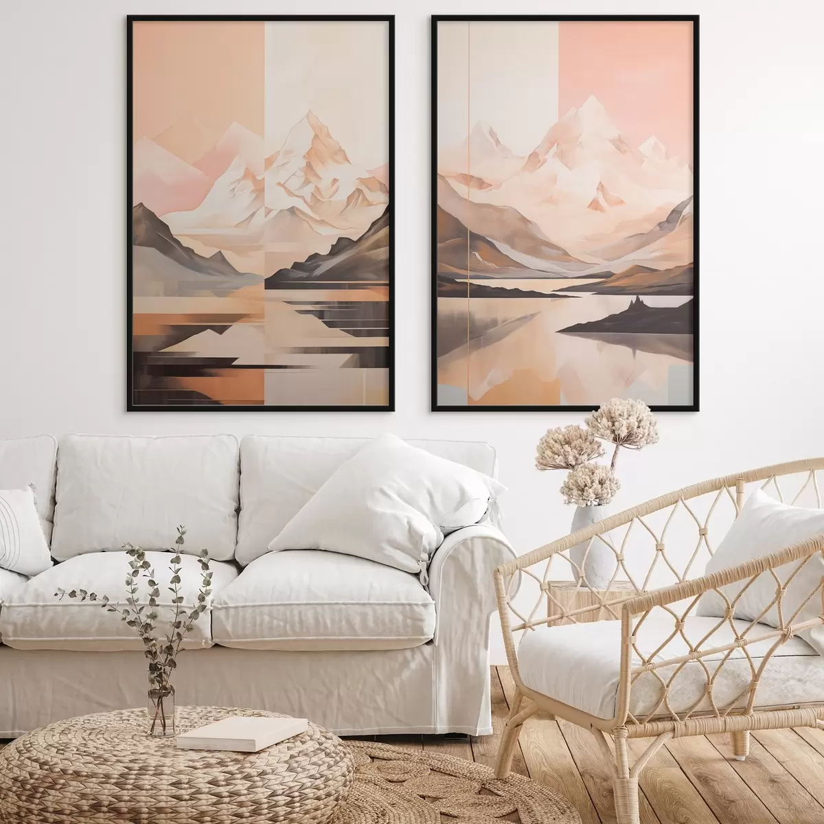 Poster Abstract landschap met bergen en een meer, pastelkleuren, minimalistische stijl Nr d00830