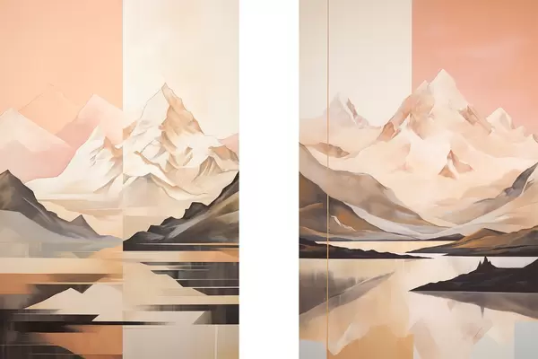 Poster Abstract landschap met bergen en een meer, pastelkleuren, minimalistische stijl Nr d00830