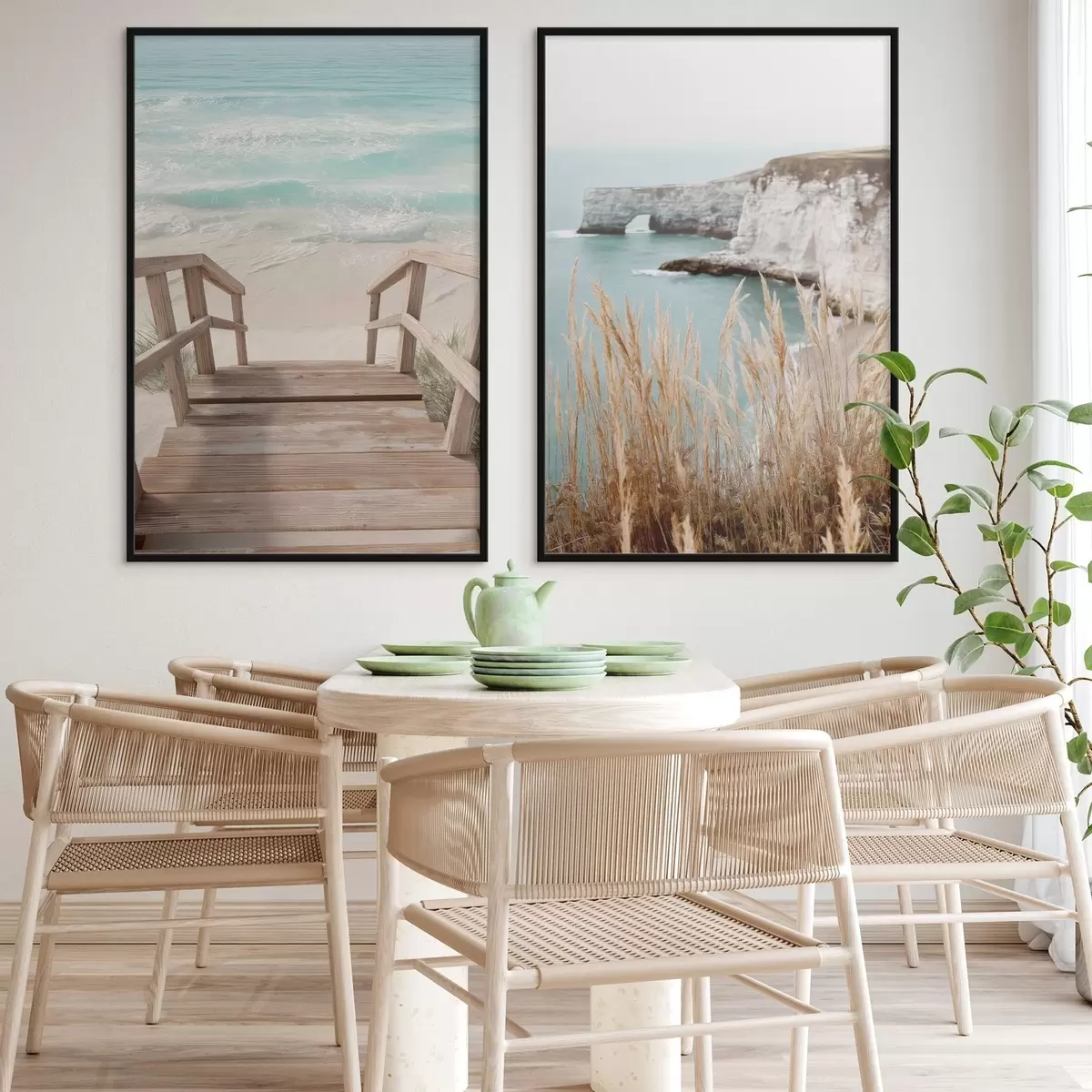 Poster Kustkliffen en droog gras aan de turquoise zee Nr d00875