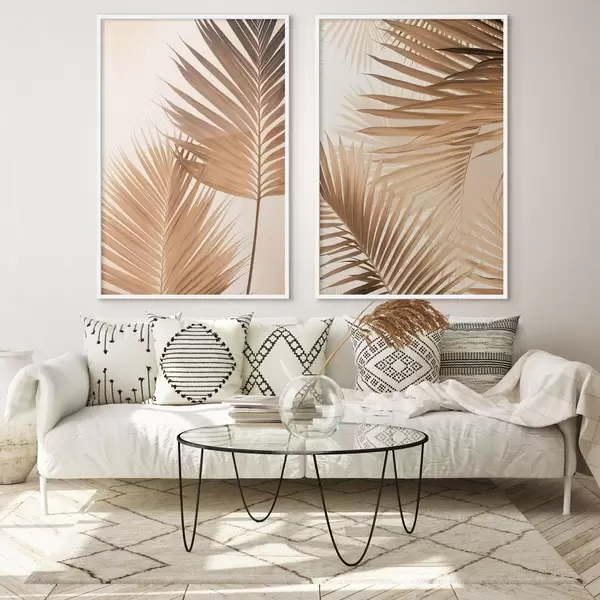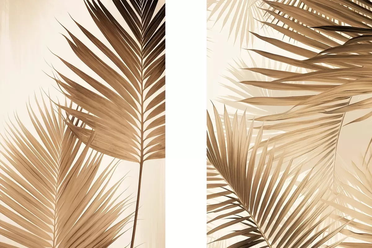 Poster Palmbladeren in bruine tinten, neutrale achtergrond, minimalistische stijl, natuurlijke belichting, tropische sfeer Nr d00880