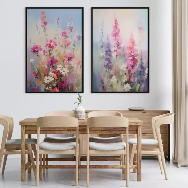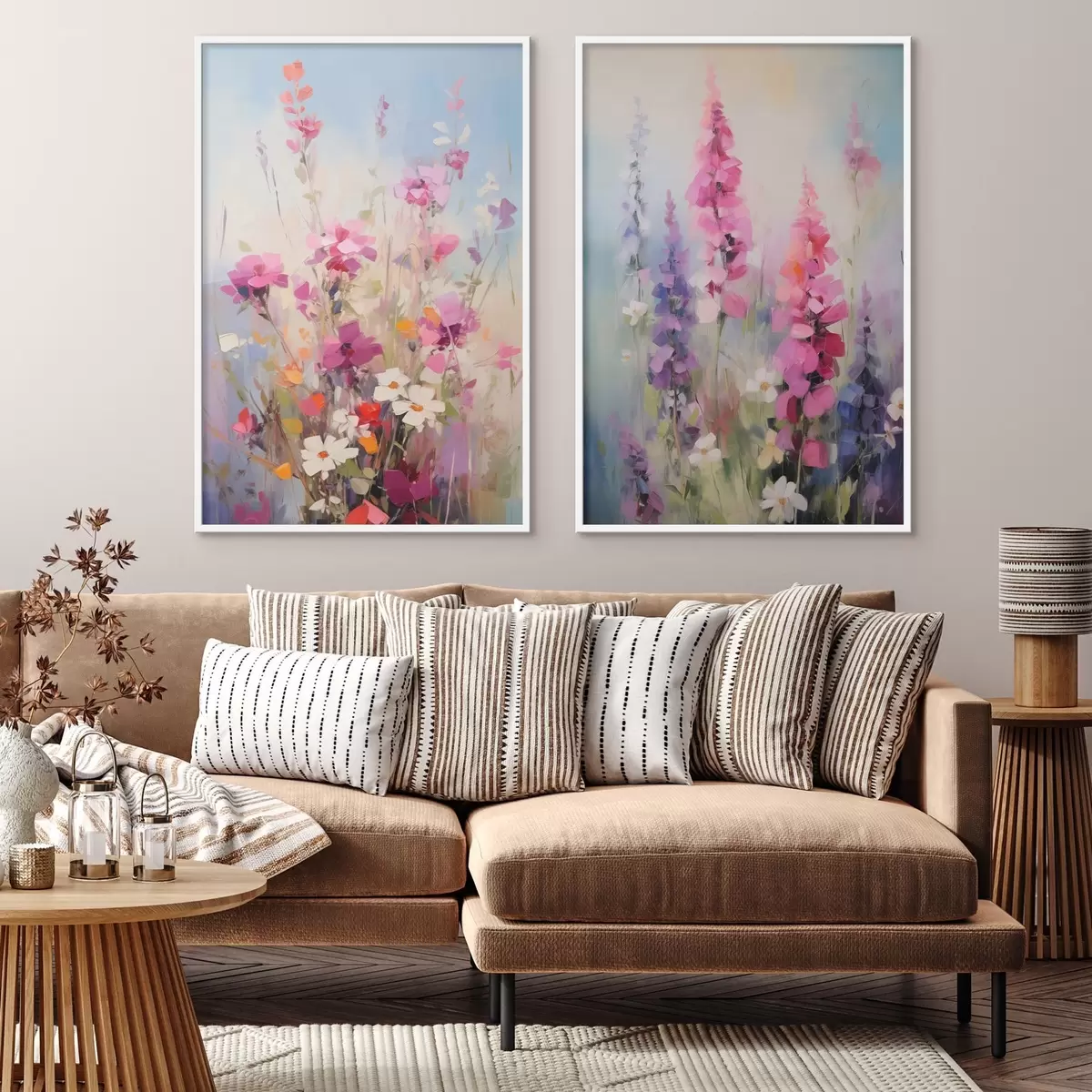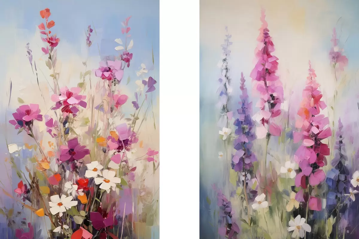 Poster Levendige bloemen met witte madeliefjes in een veld, zachte penseelstreken, pastelkleuren, impressionistische stijl Nr d00882