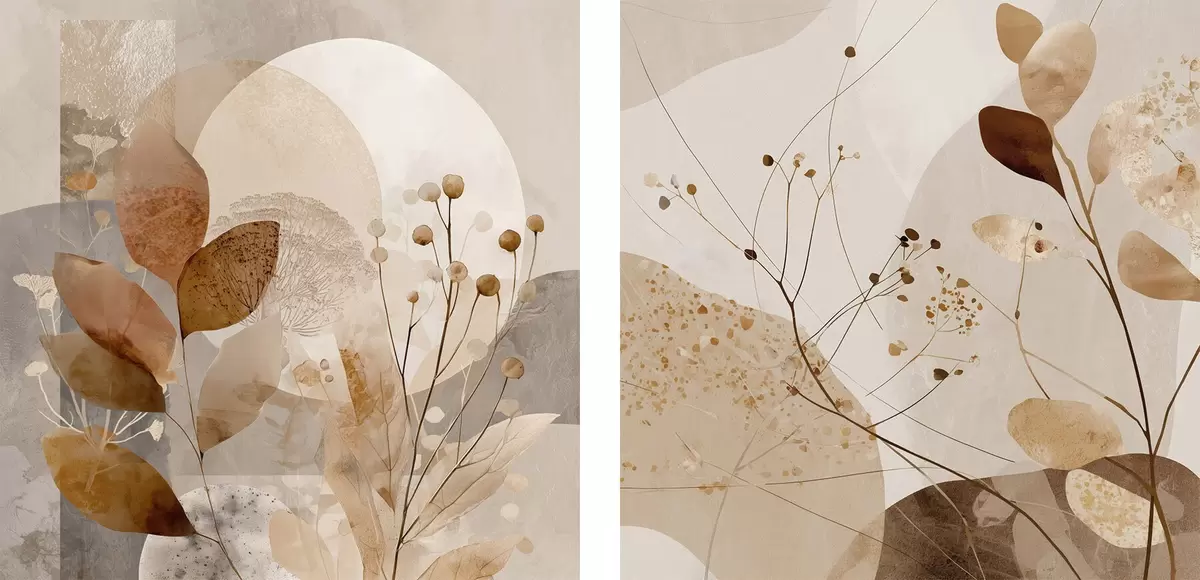 Poster Abstracte bloemencompositie in twee delen Nr d00892