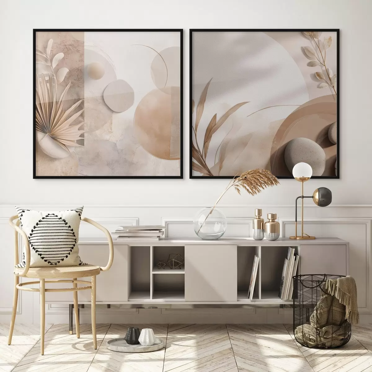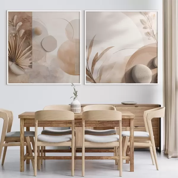 Poster Twee doeken met gedroogde bladeren en gestructureerde vormen Nr d00893