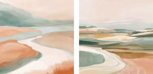 Poster Abstracte heuvels en rivier in pastelkleuren Nr d00896