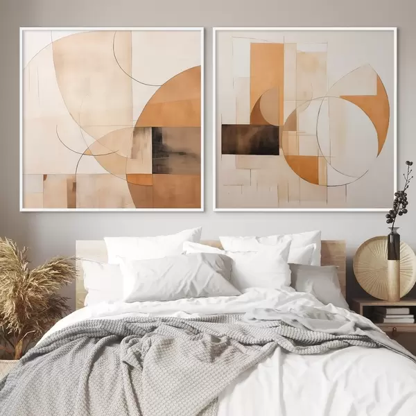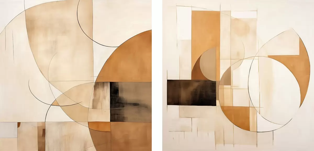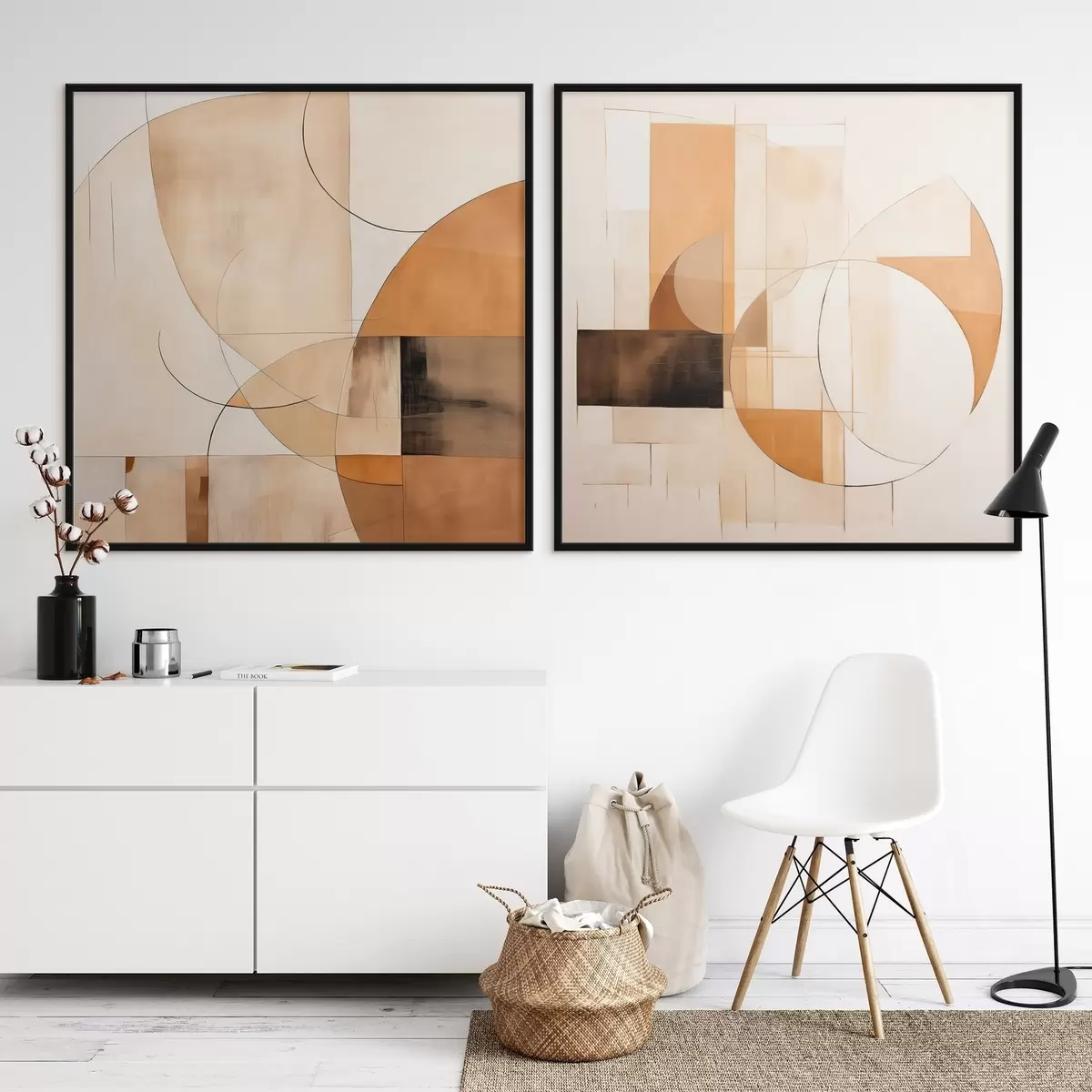 Poster Moderne abstractie met cirkels en lijnen in koffiekleuren met melk Nr d00898