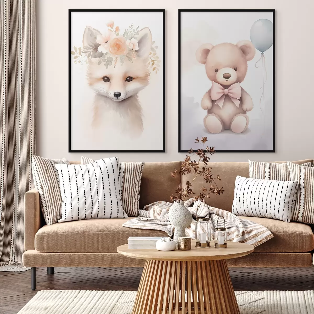 De poster bestaat uit een frame, plexiglas, geprinte afbeelding en spaanplaat achterkant. De poster kan meteen aan de muur worden gehangen dankzij de bevestigingen op de achterkant.