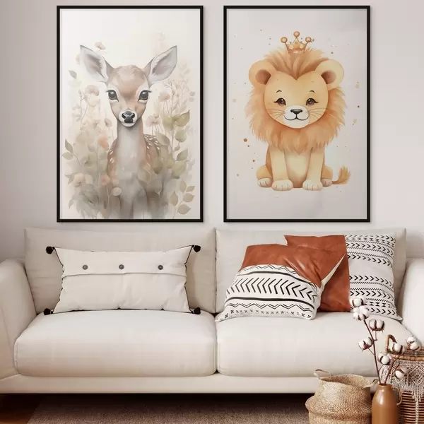 De poster bestaat uit een frame, plexiglas, geprinte afbeelding en spaanplaat achterkant. De poster kan meteen aan de muur worden gehangen dankzij de bevestigingen op de achterkant.