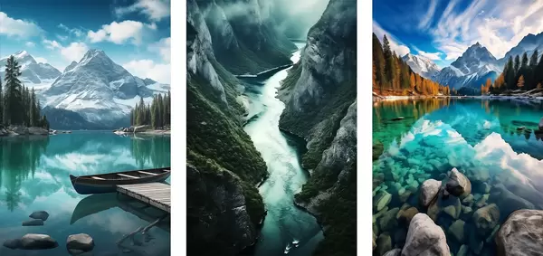 Poster Alpenmeren en uitzicht op fjorden in koele blauwgroene tinten Nr d00961