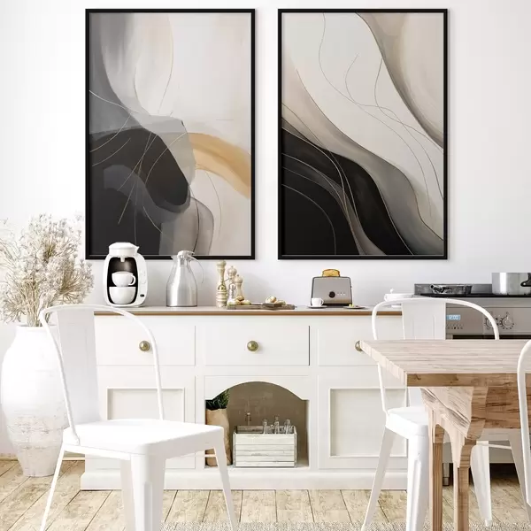 Poster Monochrome curven met fijne metalen filamenten Nr d00972