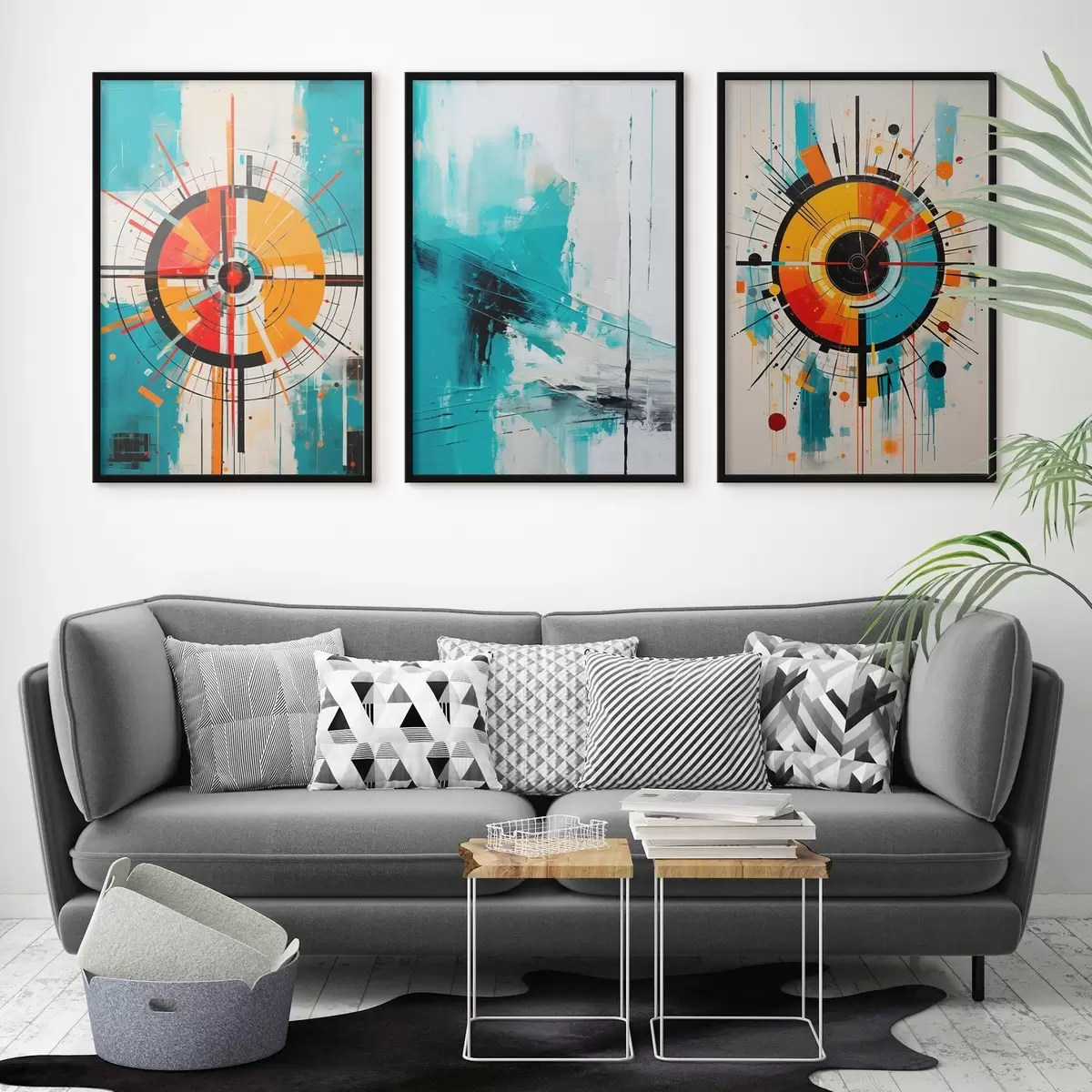 Poster Radiaal abstract met blauwgroene en oranje uitbarstingen Nr d00973