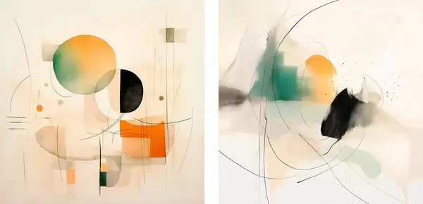Poster Abstract tweeluik met cirkelvormige vormen en dynamische lijnen Nr d00981