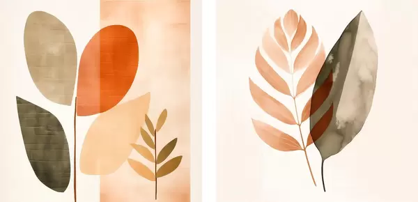 Poster Tweeluik met botanische motieven in een pastelkleurig palet Nr d00983