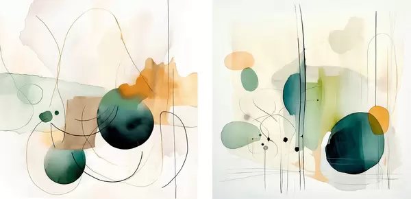 Poster Tweedelige abstracte compositie met zachte kleurvlakken Nr d00985