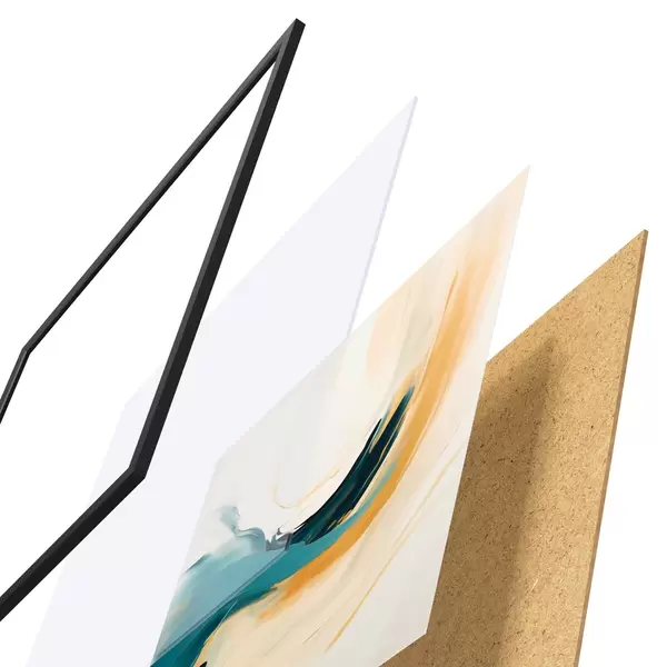 De poster bestaat uit een frame, plexiglas, geprinte afbeelding en spaanplaat achterkant. De poster kan meteen aan de muur worden gehangen dankzij de bevestigingen op de achterkant.