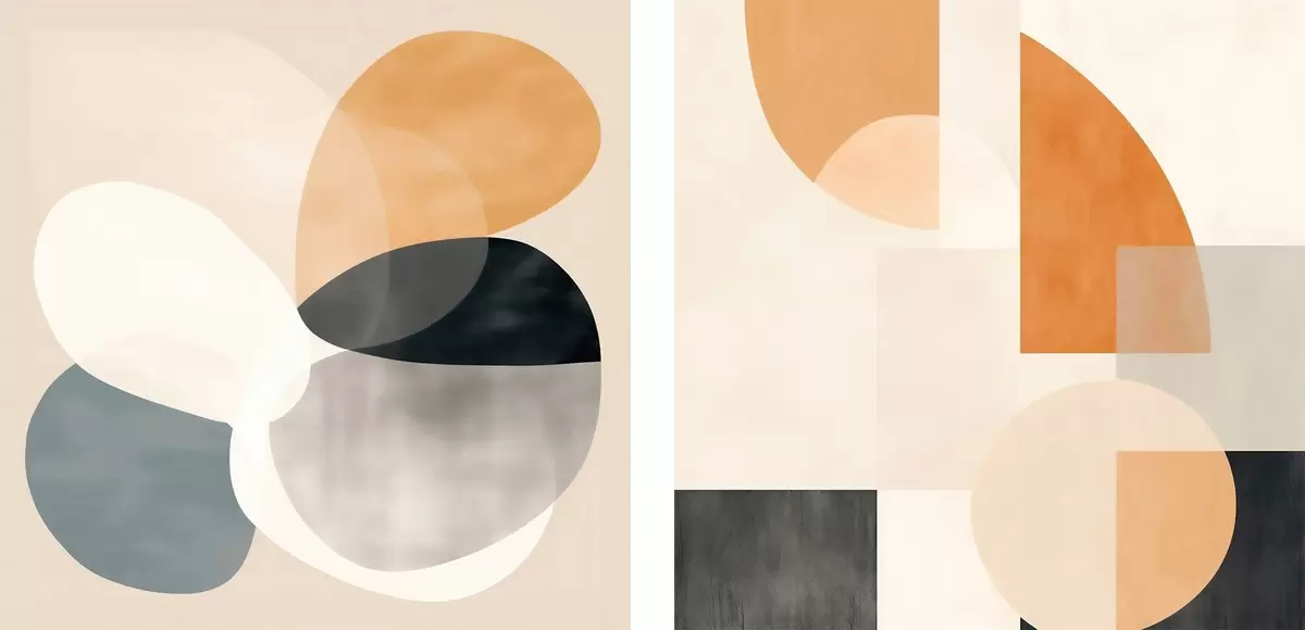 Poster Afgeronde kruispunten van vormen in aquarelminimalisme Nr d00993