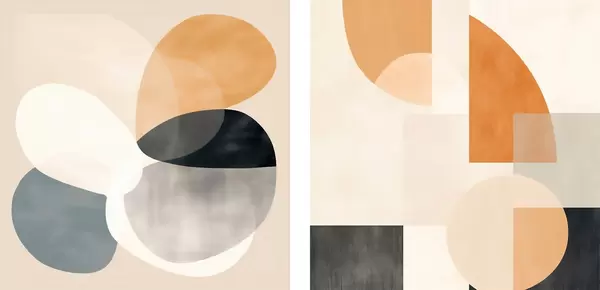Poster Afgeronde kruispunten van vormen in aquarelminimalisme d00993