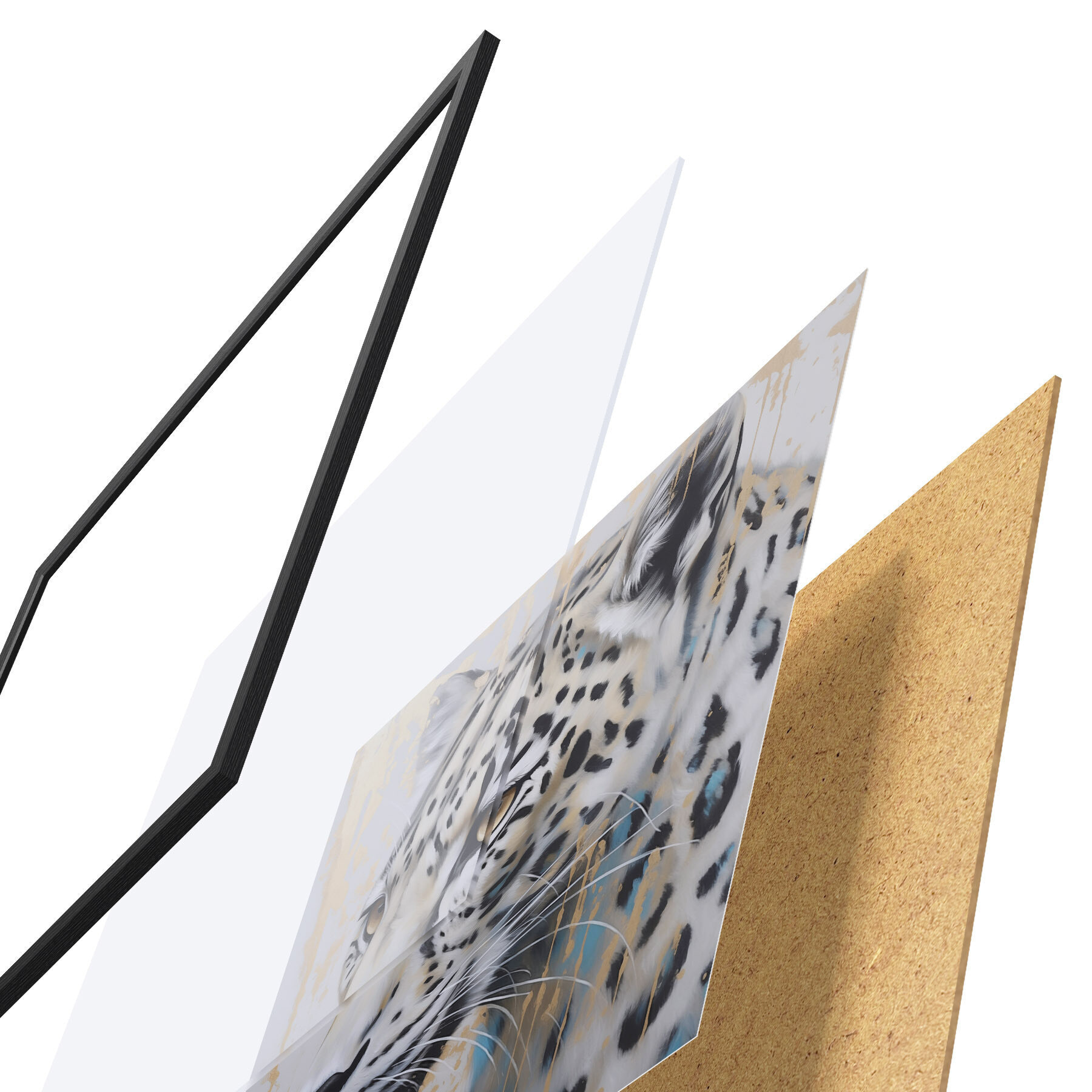 De poster bestaat uit een frame, plexiglas, geprinte afbeelding en spaanplaat achterkant. De poster kan meteen aan de muur worden gehangen dankzij de bevestigingen op de achterkant.