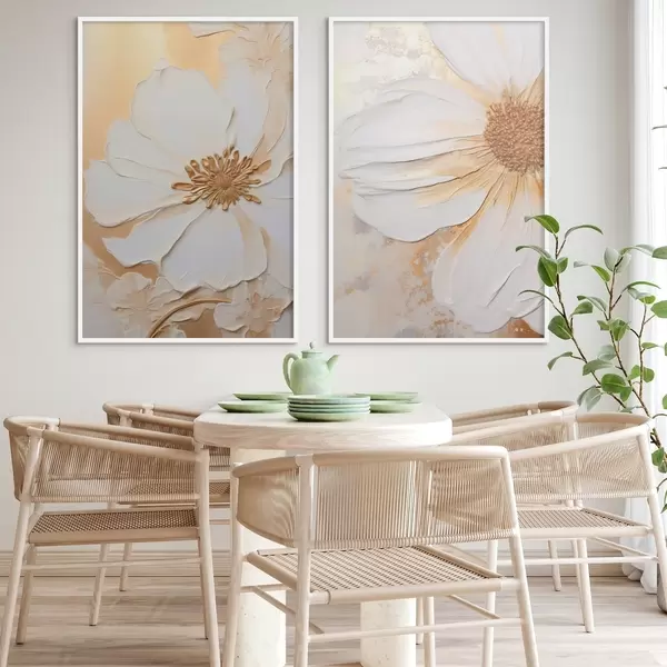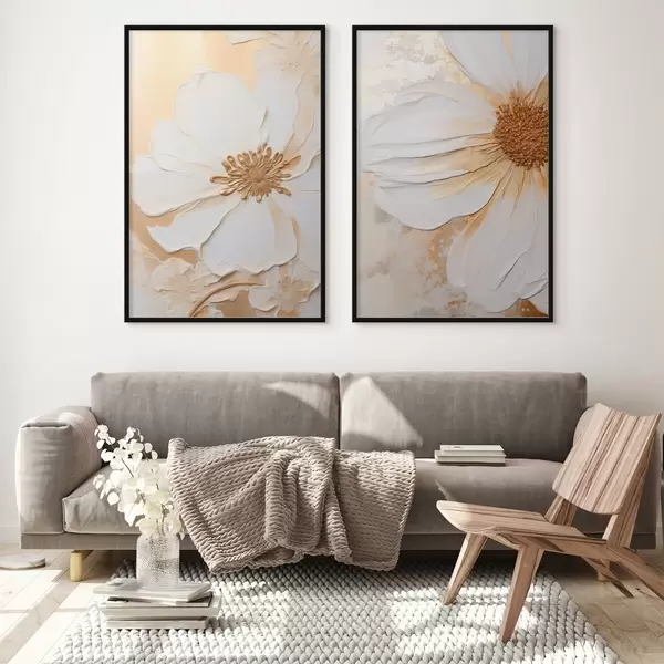 Poster Een witte bloem met delicate bloemblaadjes, een abstracte achtergrond met textuur, elegant, decoratieve kunst Nr d01006