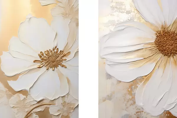 Poster Een witte bloem met delicate bloemblaadjes, een abstracte achtergrond met textuur, elegant, decoratieve kunst Nr d01006
