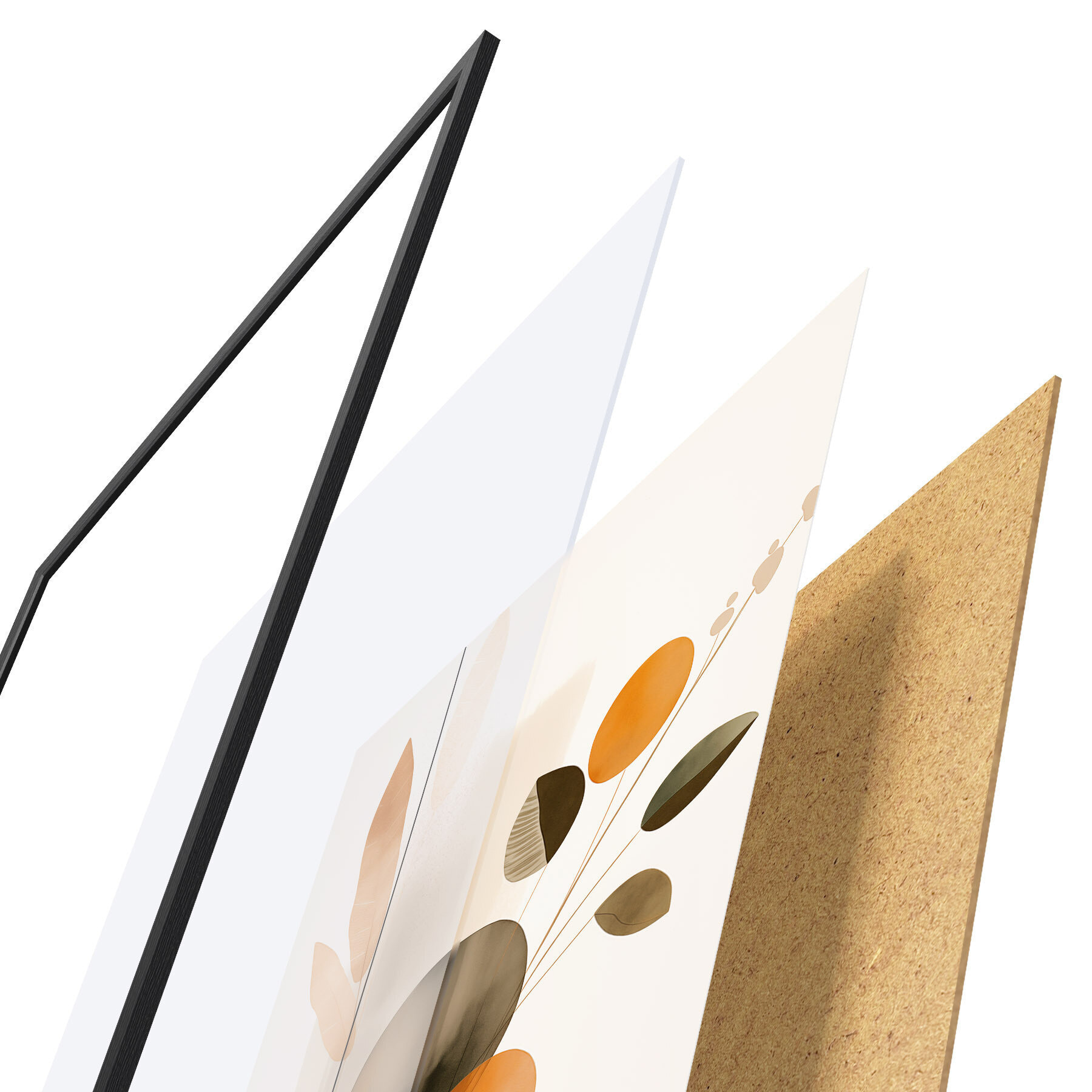 De poster bestaat uit een frame, plexiglas, geprinte afbeelding en spaanplaat achterkant. De poster kan meteen aan de muur worden gehangen dankzij de bevestigingen op de achterkant.