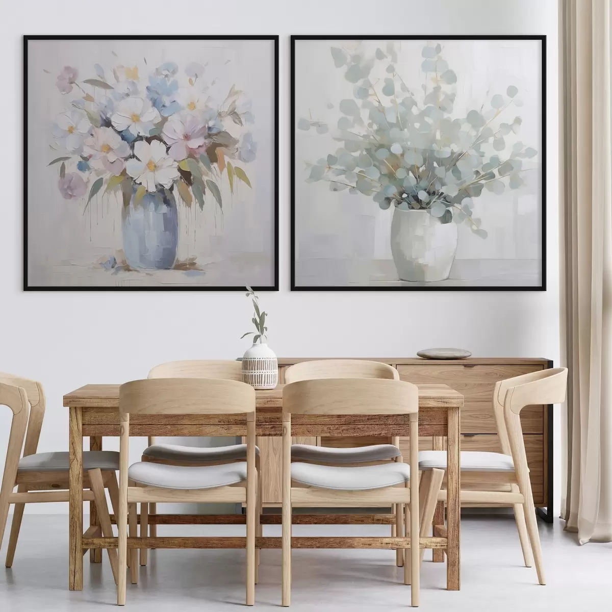 Poster Bloemen en eucalyptus imitatie schilderij Nr d01017