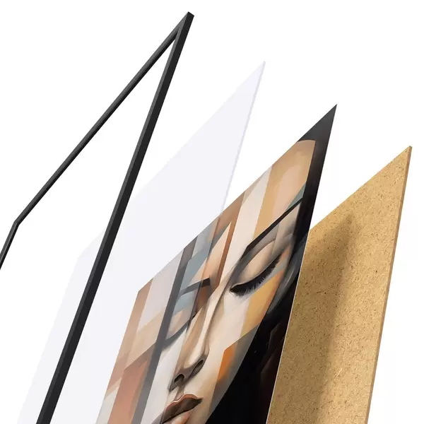 De poster bestaat uit een frame, plexiglas, geprinte afbeelding en spaanplaat achterkant. De poster kan meteen aan de muur worden gehangen dankzij de bevestigingen op de achterkant.
