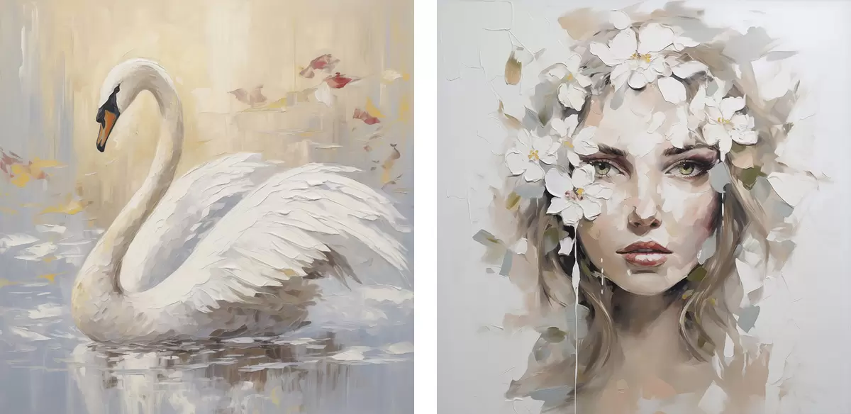 Er zijn drie soorten materiaal te bestellen: Economic Canvas - een dicht en duurzaam materiaal voor digitaal printen, identiek aan schildersdoek, waterdicht oppervlak, realistische weergave van details, materiaal met gemiddelde korrel. Premium Canvas - de textuur lijkt op die van schildersdoek (verweven kleine draden). Zachte, gedetailleerde reproductie van de afbeelding op een mat oppervlak. Eco-Premium - hoogwaardige 100% katoenen stof. Dankzij de natuurlijke katoenvezels is het materiaal duurzaam en slijtvast. Uitstekende kleurweergave en detail.